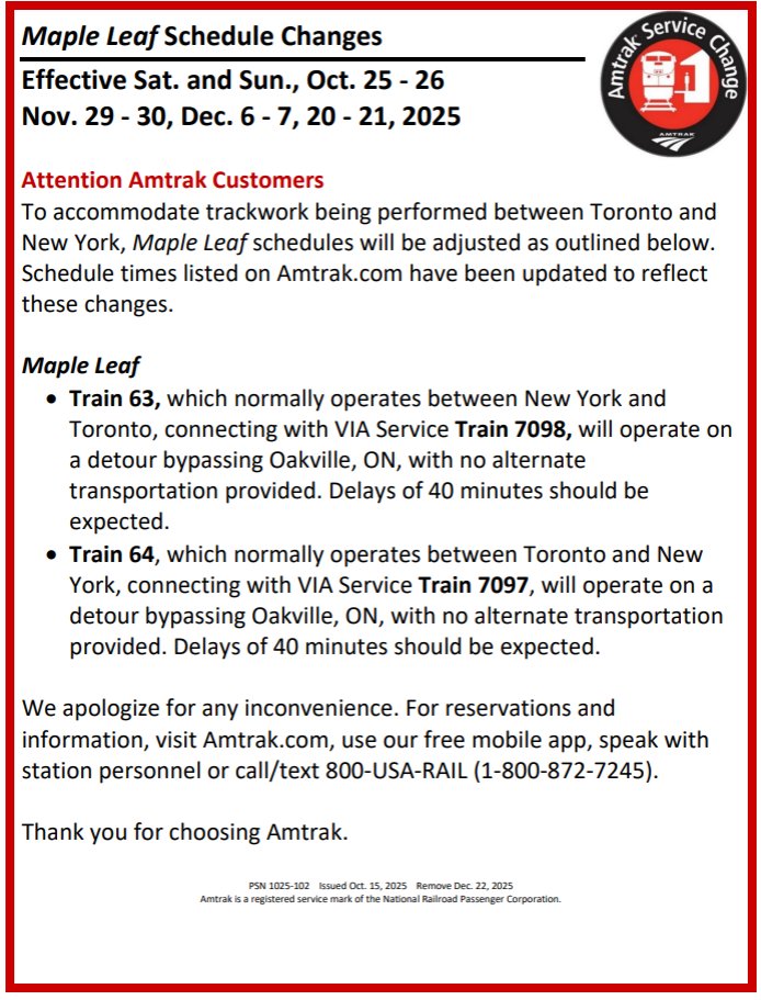 To accommodate more in-person events and same-day travel, Amtrak is adding more service on Thanksgiving morning and will increase the number of trains operating from Nov.18 – 28. Customers can also take advantage of additional service in the Northeast, Virginia, and between Portland, Ore., and Seattle – plus newly restored service for those traveling to and from Vancouver and Toronto.